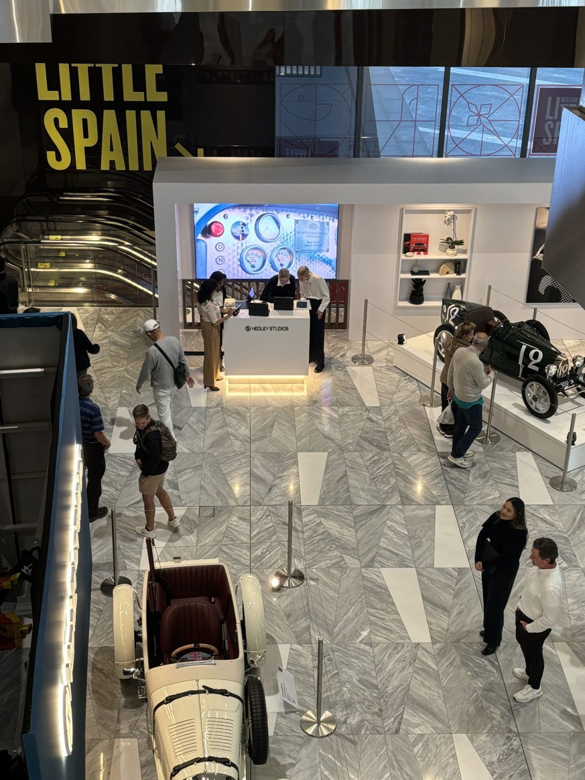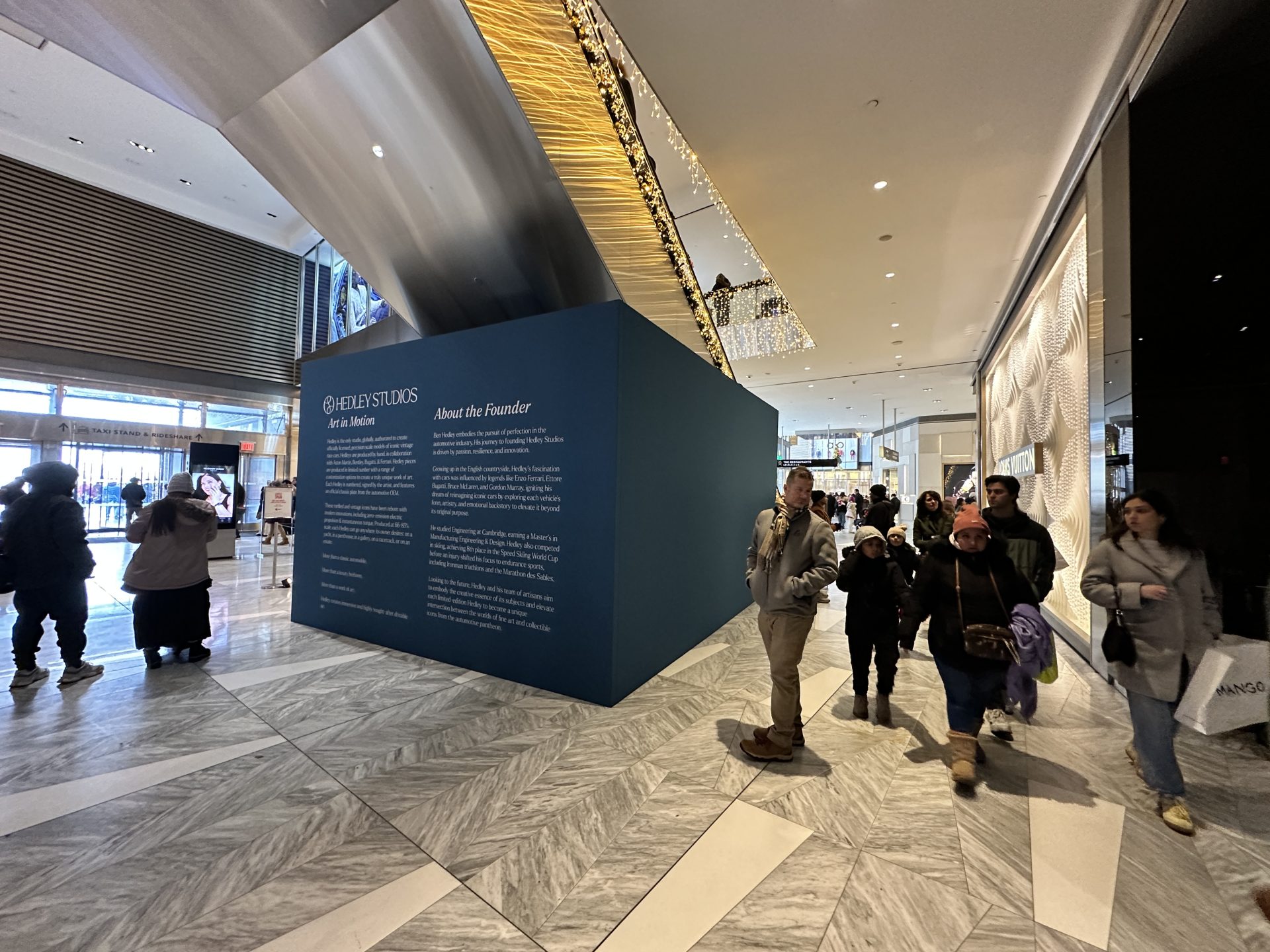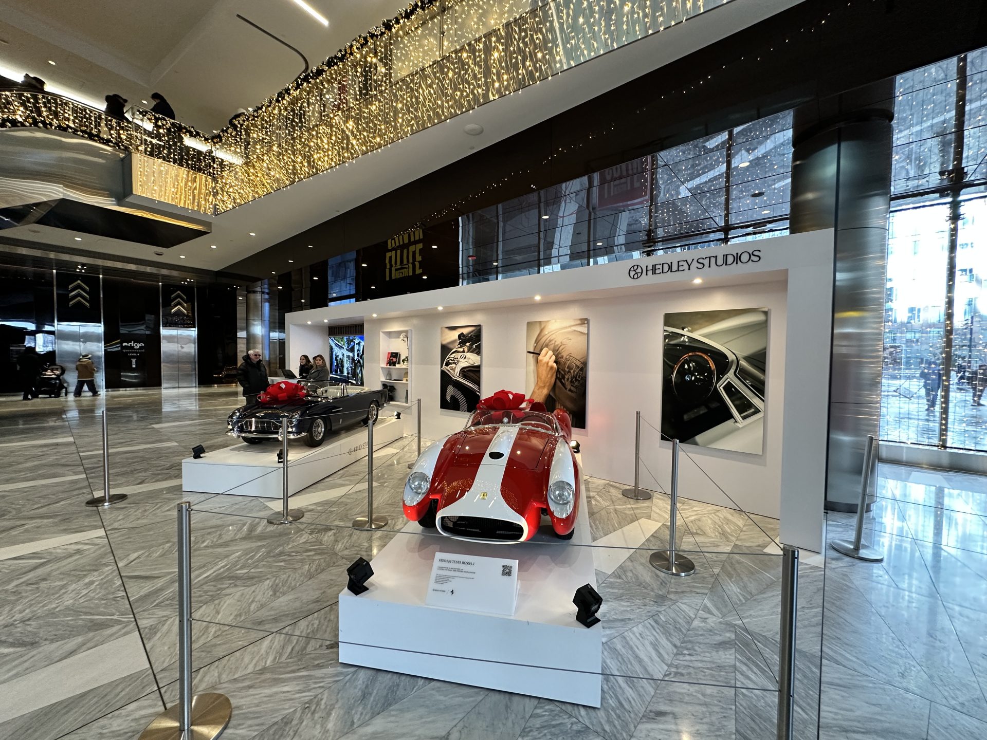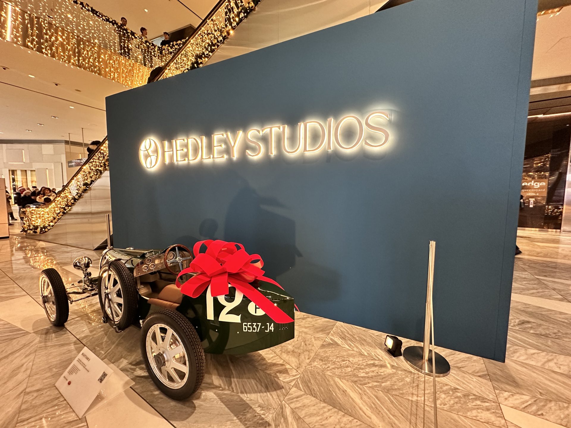Hedley Studios brought their precision scale models of iconic vintage cars to a new gallery space at Hudson Yards. Harbor worked to build out and install this space designed by Interluxe to showcase Hedley products. The space included large walls visible from all sides, signage, and a reception desk.