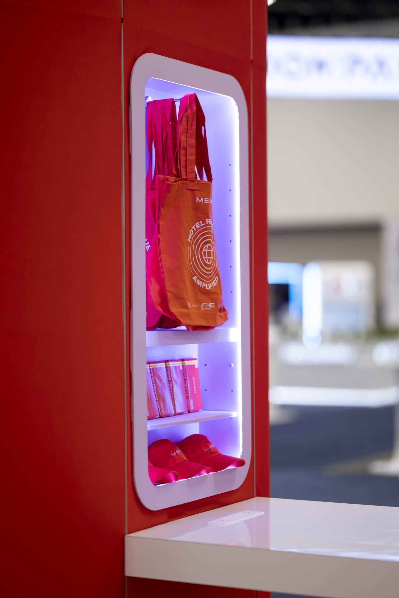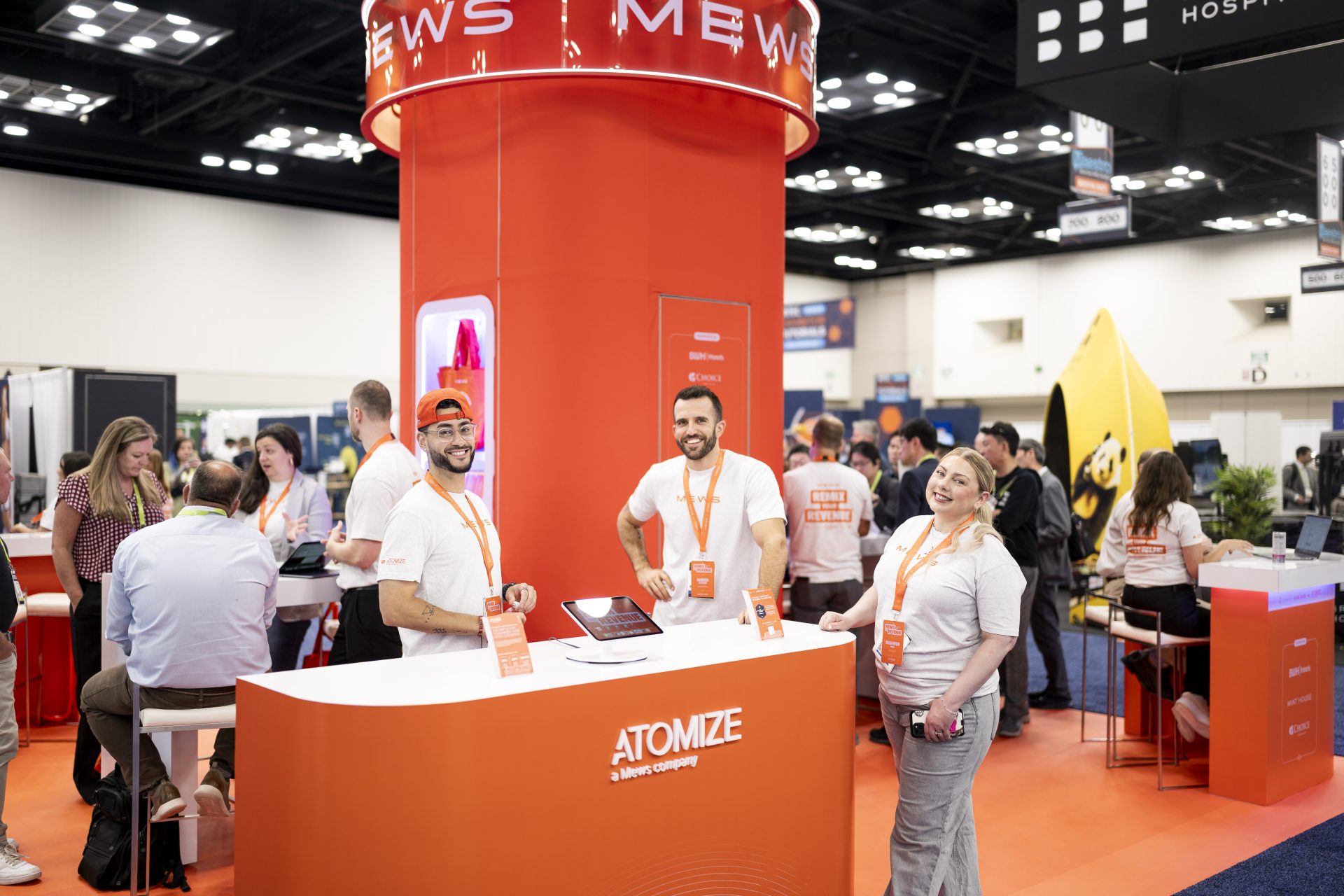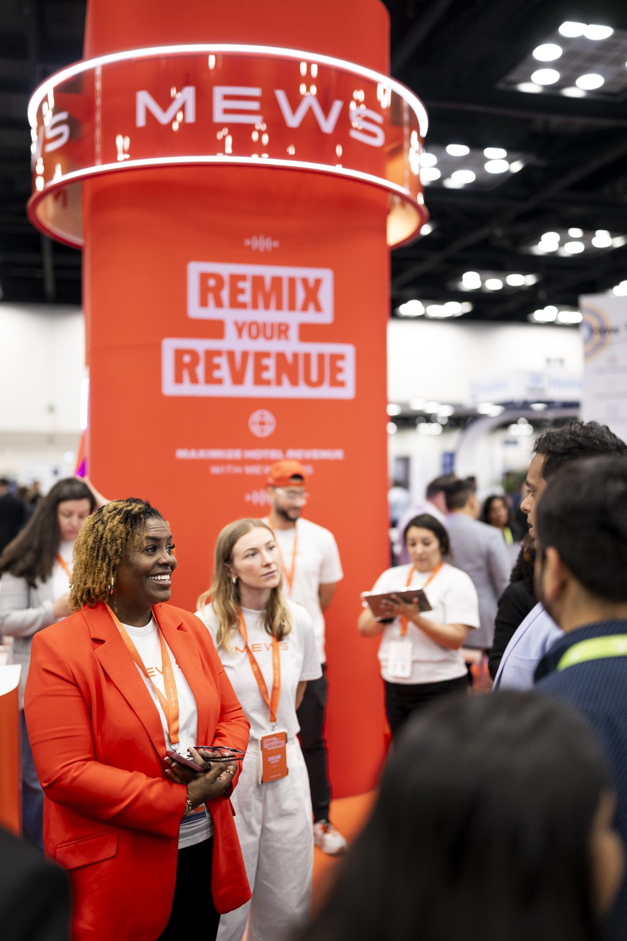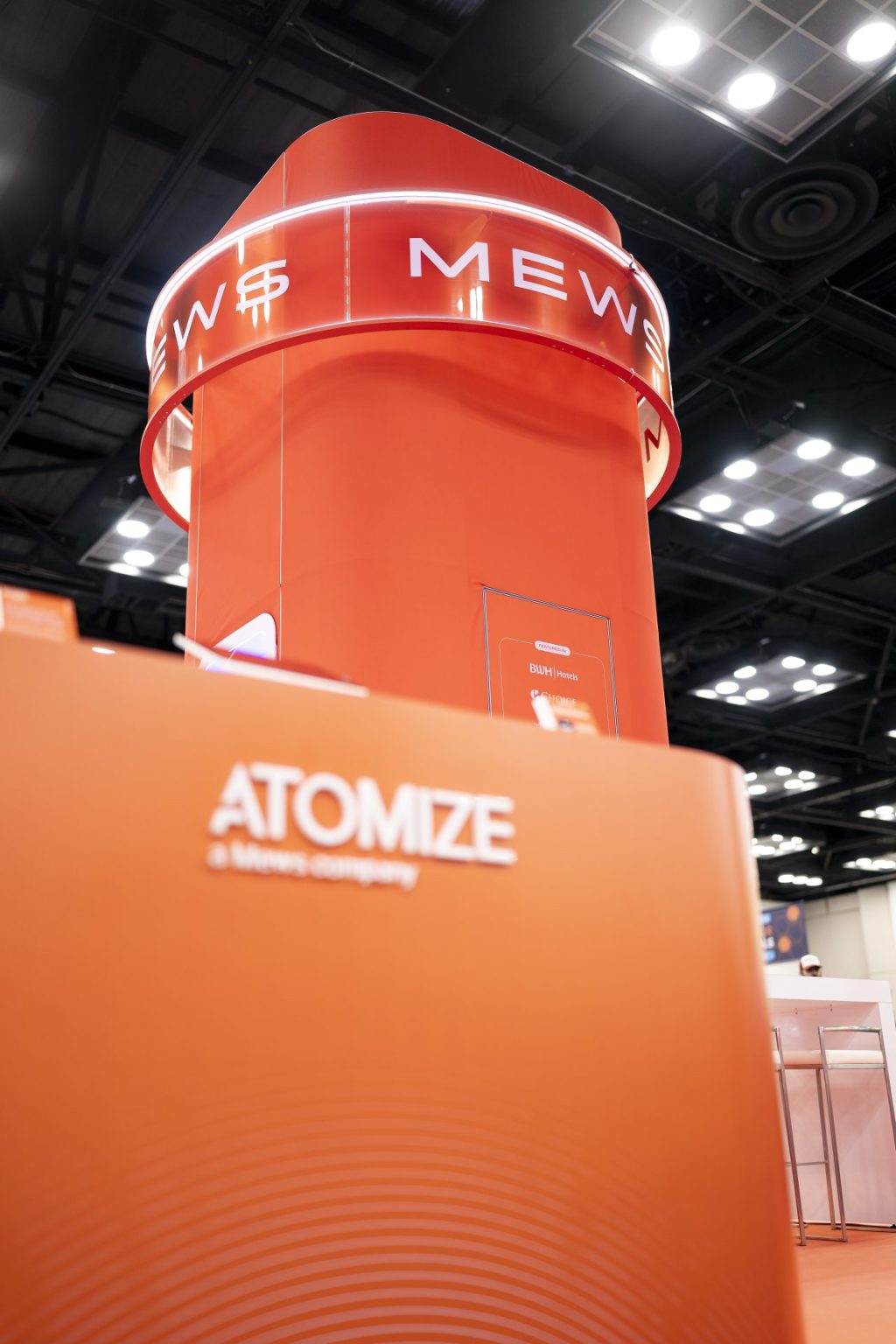 Harbor designed this vibrant and distinctive 20×20 booth for Mews Systems, creating an optimal environment to highlight their hospitality management system and engage with hoteliers, partners, and industry associations. Key features include a translucent LED logo sign, an illuminated merch display wall, convenient storage/closet space, demo counters, and custom printed and wrapped furniture, all designed to maximize networking opportunities.