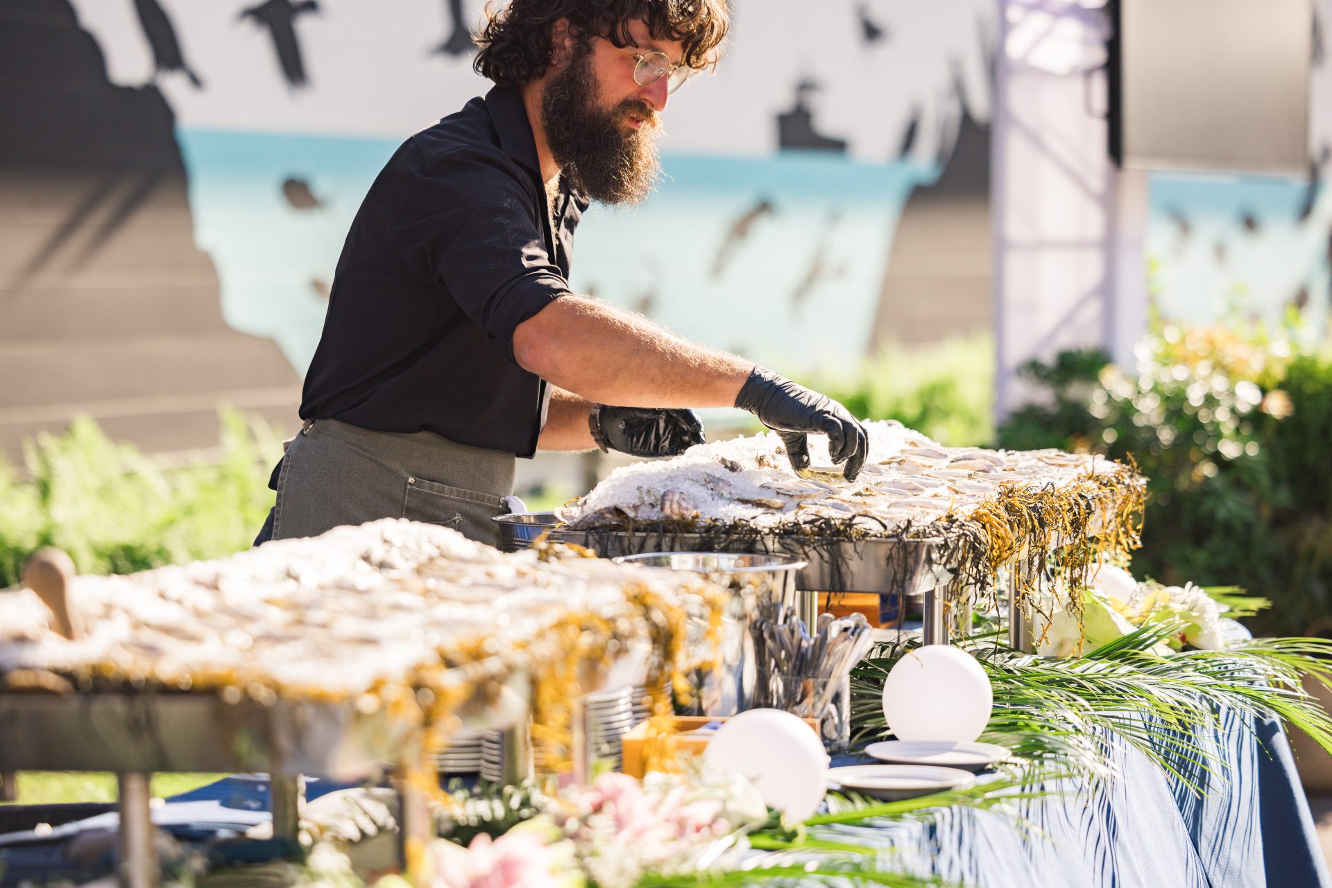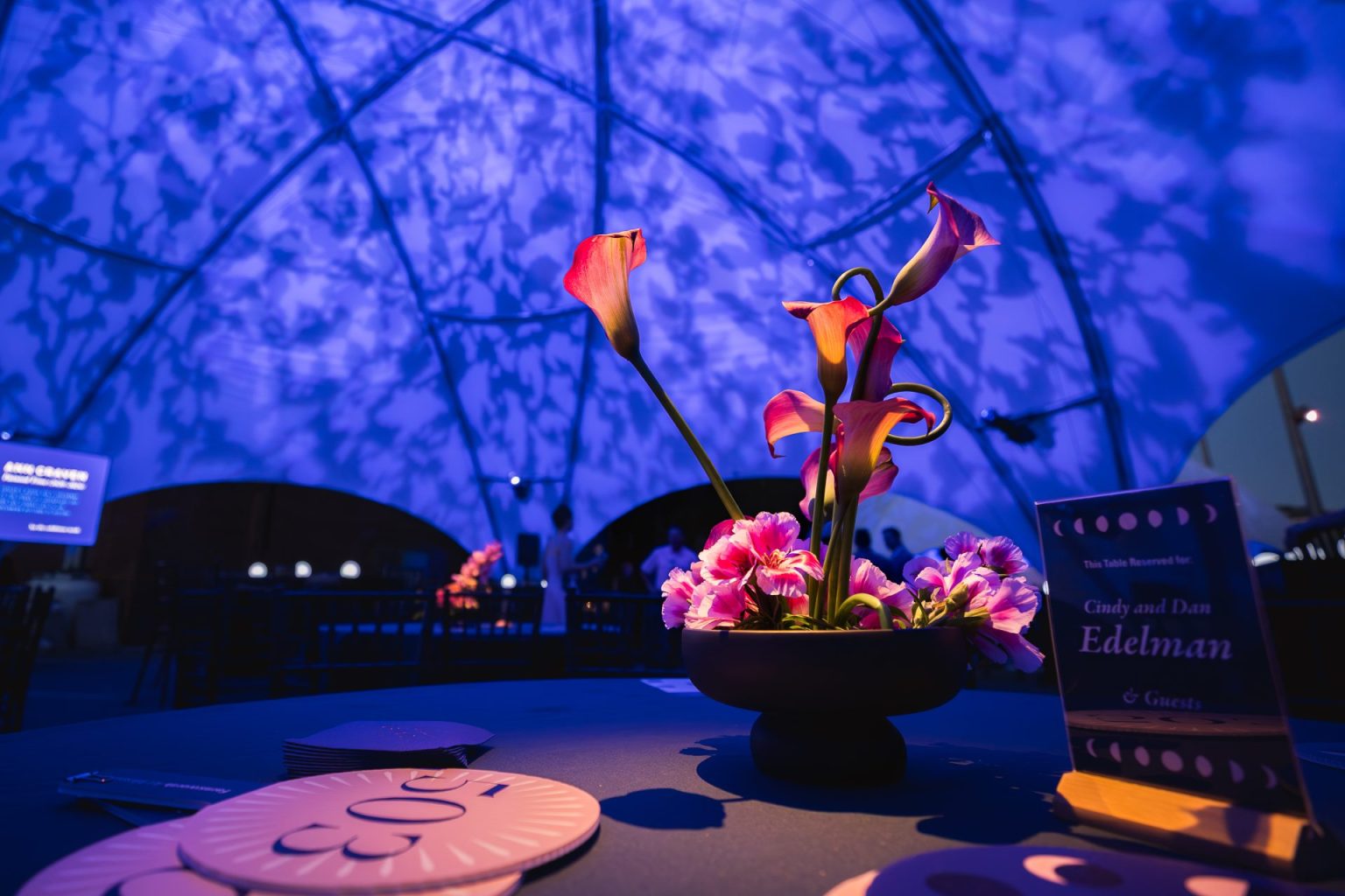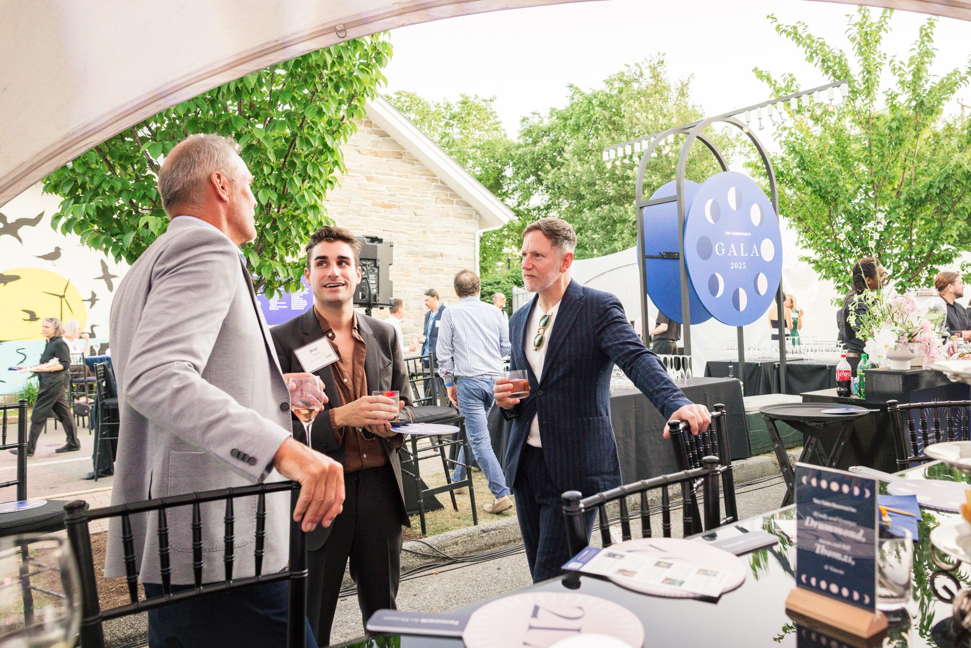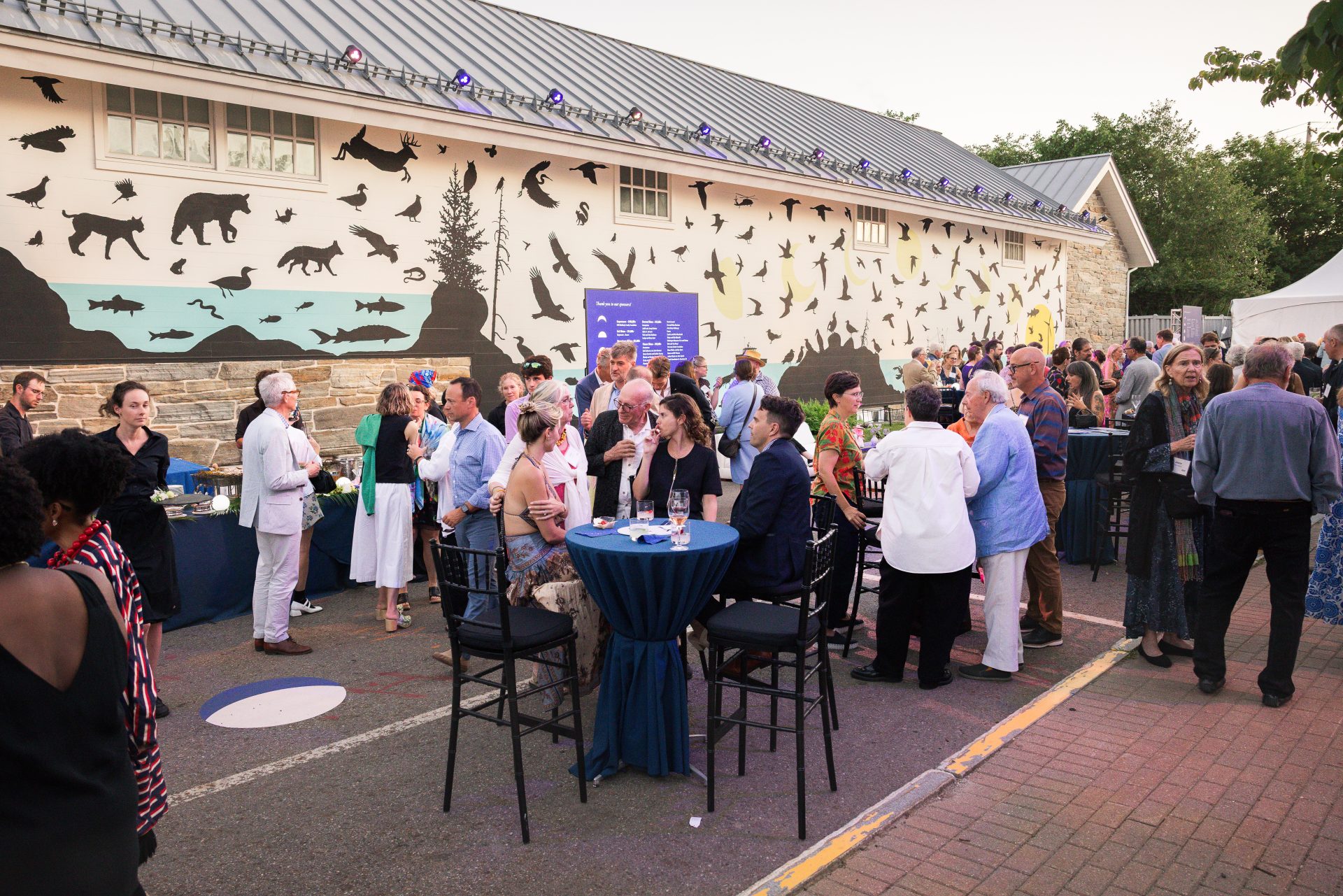 To cultivate a relaxed and engaging atmosphere for over 500 passionate art enthusiasts, Harbor designed an event site encompassing the main gallery’s side lot and Museum street. This open layout with hexadome tenting transformed the property’s exterior and highlighted their new mural by James Prosek. The layouts encompassed both assigned and casual seating to accommodate various ticking tiers. Attendees freely circulated among food stations, bars, and the gallery space, enjoyed dancing in the band tent, and utilized abundant casual seating for conversations. Guests had the opportunity to participate in a thrilling live auction, which supported transformative curatorial endeavors and educational programs.